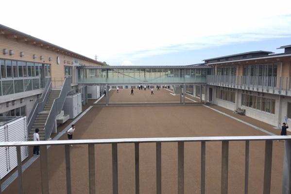 生徒が遊ぶ中庭の向こうには、雄大な富士山の姿も!