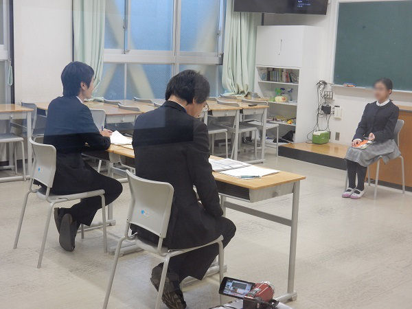 終了後この入試を始めた理由について聞くと、「読書プレゼンは在校生も行なっていて、読書が好きな生徒はいろいろな意味で、潜在能力を持っていて良い子が多い。そういう子どもたちにぜひ受験して欲しいので、入試にも取り入れようと思った」と国語科主任。この日の受験生は、予想以上に多面的な角度から本を読み解き、考えていて、面接用の付け焼き刃ではない自分の言葉を持っていたそうで、話していて楽しかったと振り返っていました。