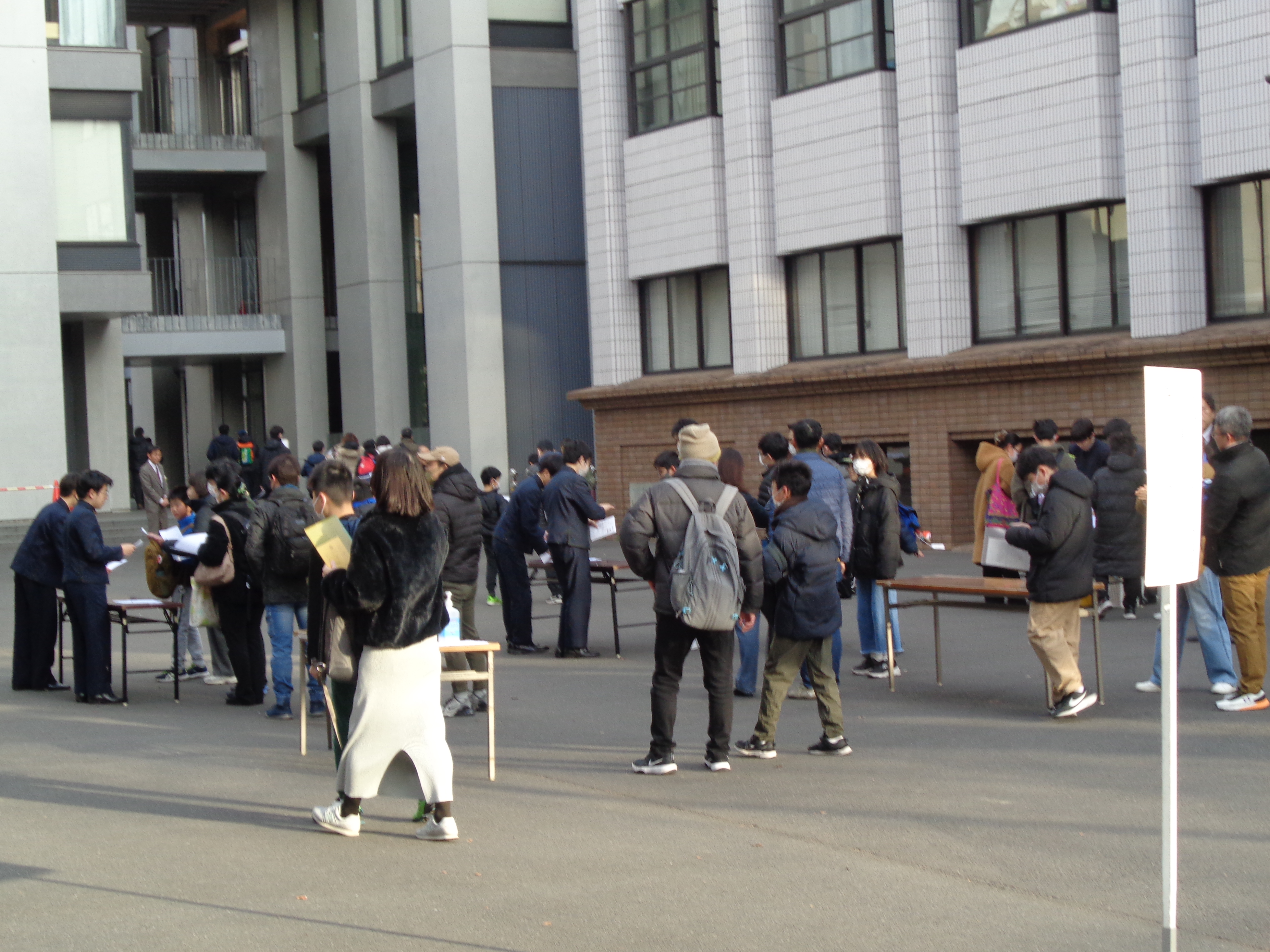 そして午前8時、受験生を試験会場へ促すアナウンスが流れると、一斉に南校舎の試験会場へと向かいます。