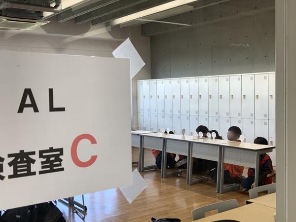 検査Ⅱのグループワークは、4階と3階の10教室に、1教室6〜7名が振り分けられて入室。試験が始まるまでの間に誰ともなく自己紹介を始め、談笑する姿が複数の教室で見られました。
