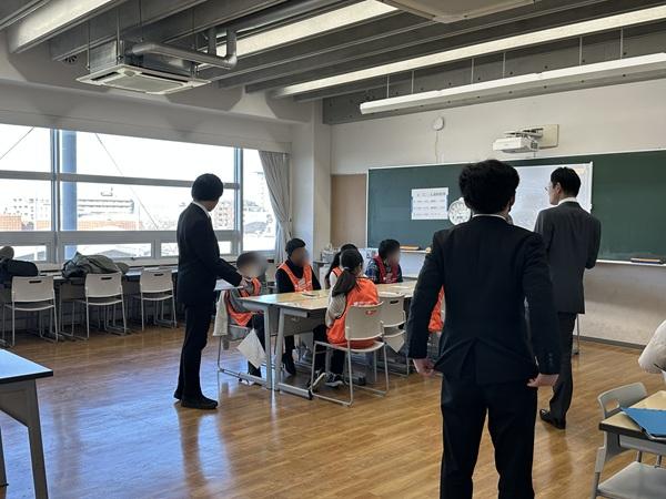 試験問題が回収されると、検査Ⅱのグループワークが行われる会場への誘導が始まりました。誘導を担当するのは在校生ですが、全員が、このAL型入試で入学した生徒たちだそうです。中学1年生もいたそうですが、1年前に同じ入試を受けた先輩として、一生懸命役割を果たしている姿に成長を感じました。