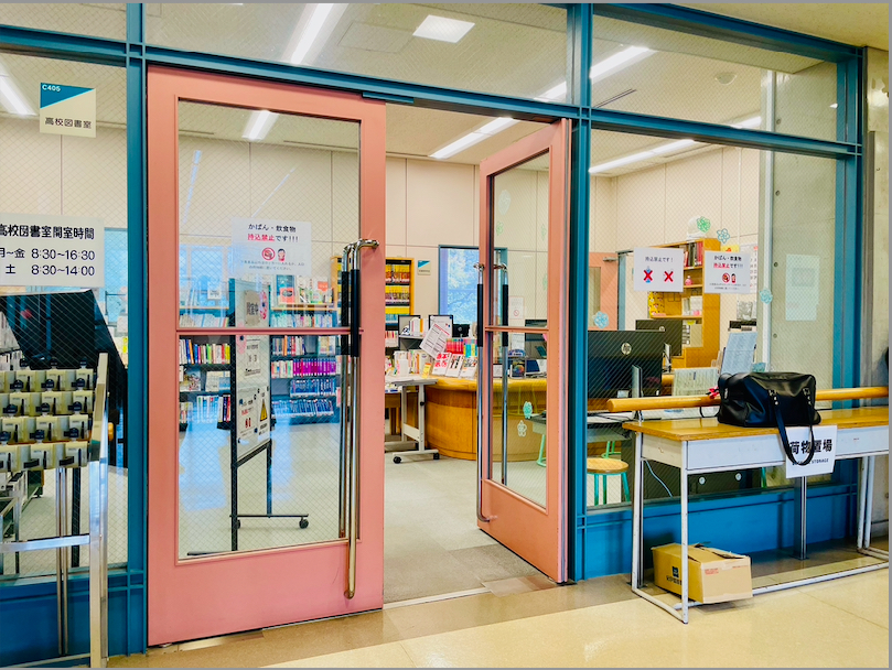 同じフロアに中学、高校、それぞれの図書室の入口があり、年代に応じた蔵書が配架されています。