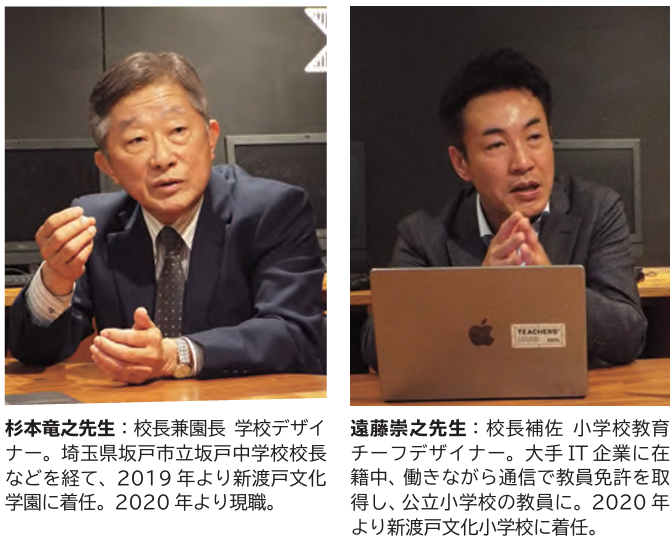 杉本先生:本校の教員は、“先生”ではなく全員「デザイナー」という肩書きを名乗っています。子どもたち一人ひとりと真摯に向き合い、より良い教育をデザインする。それこそが新渡戸文化が目指す教育のあり方であり、「HappinessCreator」の体現につながるのではないかと思っています。