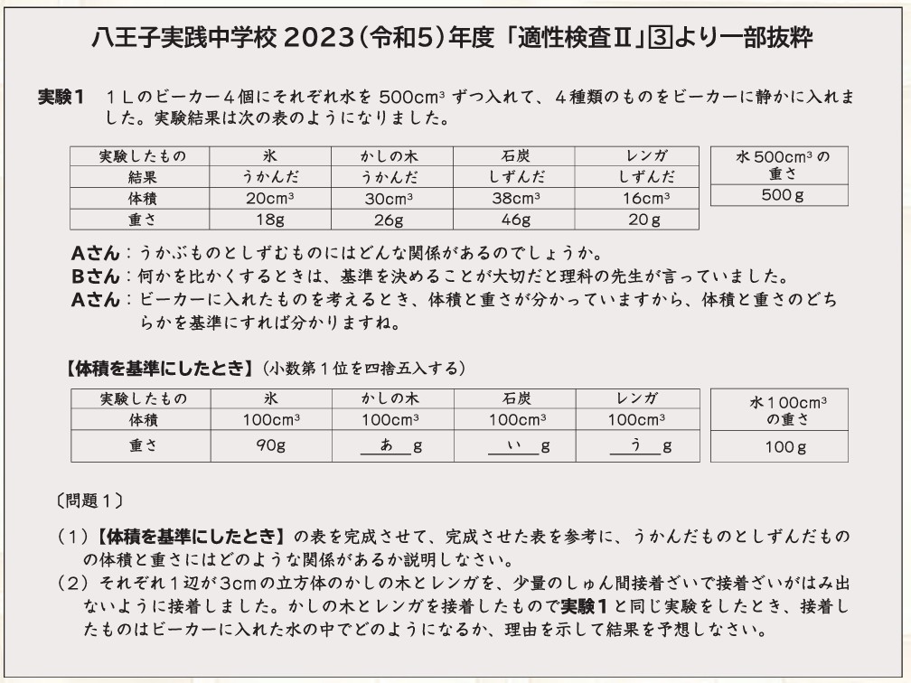 八王子実践中学校「適性検査入試」