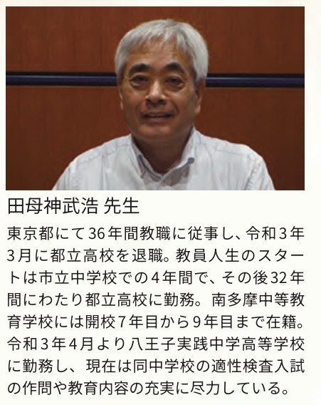 八王子実践中学校では、2019年度から従来の教科型入試を廃止し、「プレゼンテーション入試」と「適性検査入試」を導入。適性検査は東京都立南多摩中等教育学校の出題傾向に準拠し、難易度なども同等です。今回は、かつて南多摩中等教育学校に在籍し、現在は八王子実践中学校で適性検査入試の作問を担当する田母神武浩先生(入試広報室)にインタビュー。作問における工夫や、同校が求める資質ついてお話を伺いました。