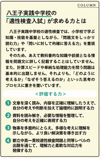 八王子実践中学校の 適性検査入試が求める力とは?