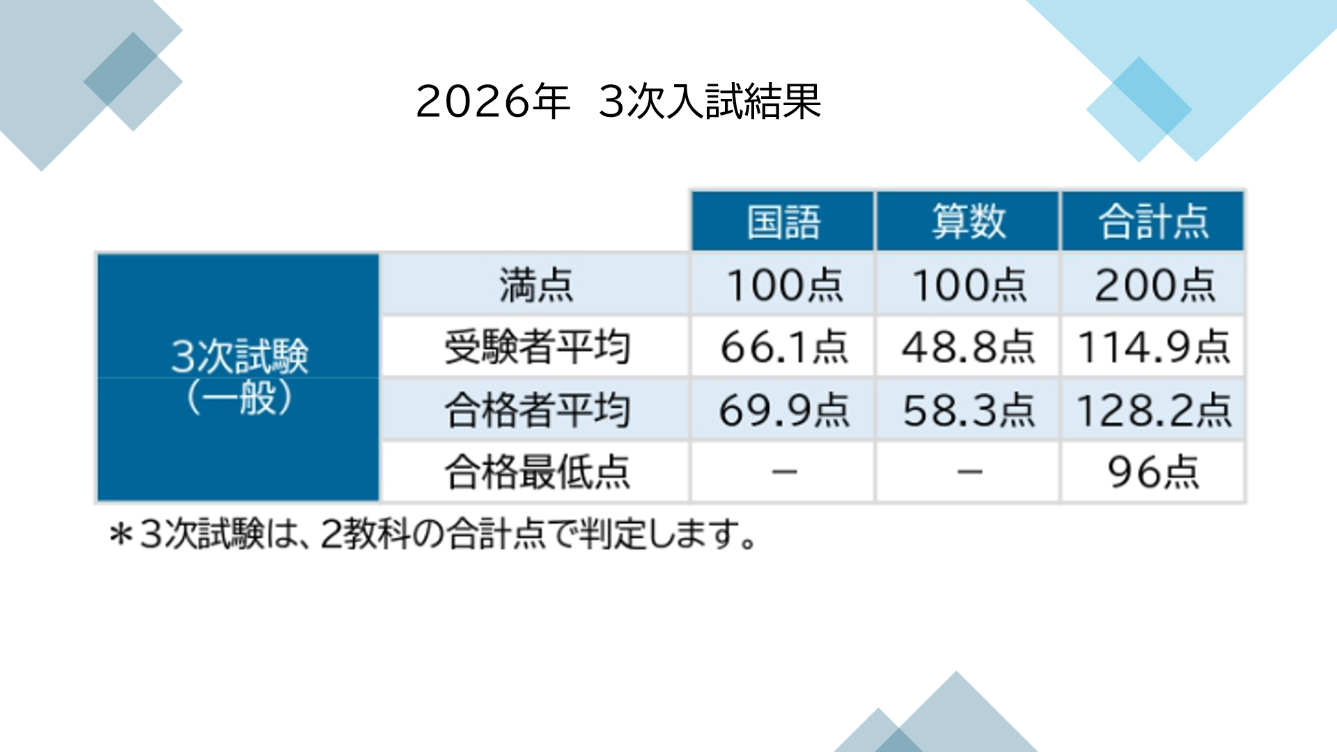 同校の3次入試は、2026年中学入試の最後の試験回です。