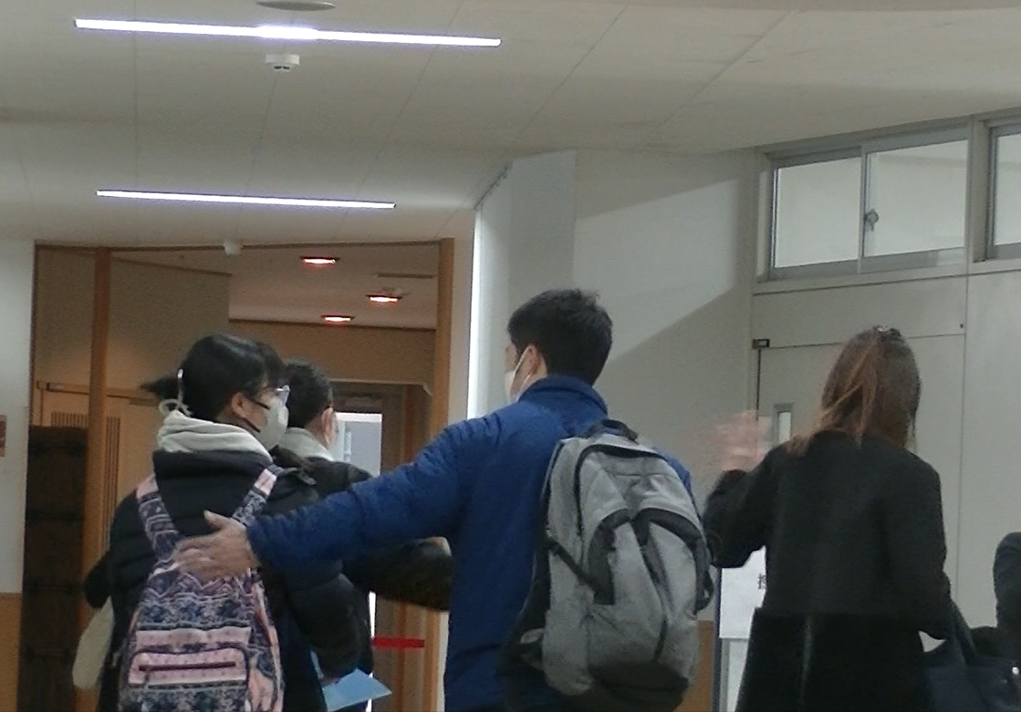 受け付けの教室を出て左に進むと、受験生は保護者と別れて試験会場へ向かいます。