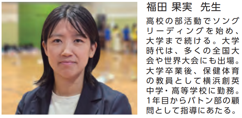 全国大会常連の横浜創英中学・高等学校バトン部。今回は、日々の練習や大会への 思い、そして生活面での成長まで、顧問の福田先生にお話を伺いました。見どころは、 単なる技術指導ではない、「人としての成長」を軸にした指導方針にあります。