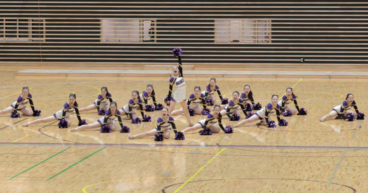 『バトン部』という名前ですが、実際には“ソングリーディング”という競技に取り組んでいます。ポンポンを持ち、音楽に合わせて踊る団体競技で、チアダンスの一種です。アメリカのフットボールの応援から派生した競技で、日本ではまだまだ認知度は高くありませんが、年々広まりつつあります。ソングリーディングは、ダンスを中心とした演技で競い合います。基本的な要素にはクラシックバレエ、筋力トレーニング、体幹、柔軟、そして表現力が含まれます。演技構成やチームの一体感、表情、姿勢、美しさまで総合的に評価される競技です。