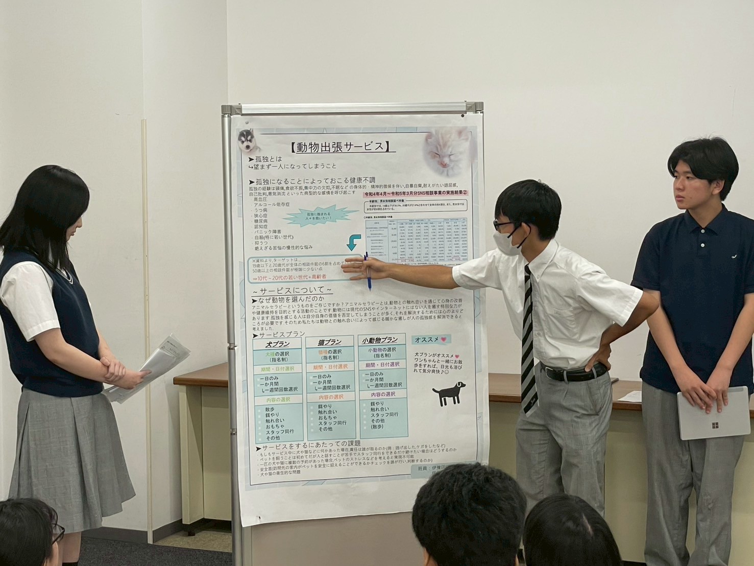 普段の探究活動の取り組みをポスターに表現し、様々なテーマでセッションを行いました。生徒同士で質疑応答も活発に行われ新たな発見にも繋がりました。
