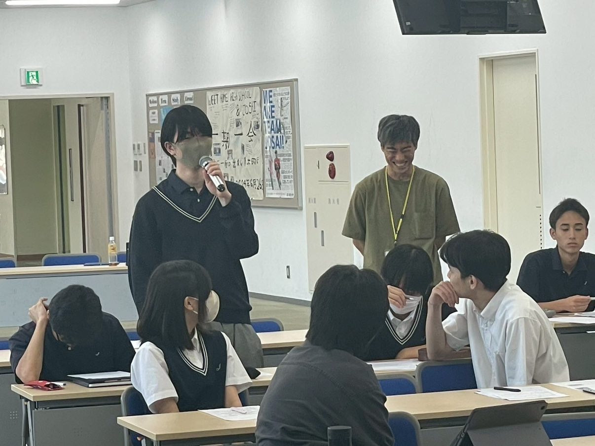 開会式では、1日グループ活動で共にする学校・学年を越えた仲間たちとのチームづくり。まず、グループ単位で自己紹介。自分の得意なこと、プロジェクトや部活動、課外活動などの取り組みを共有し、新たな発見を得るスタートとなりました。アイスブレイクとして、仲間の「好み」や「価値観」をテーマにした予想型コミュニケーション「十人十色ゲーム」を実施。チームメンバー間の信頼関係や協力体制が向上、全員が一体感を持って活動できるようになりました。
