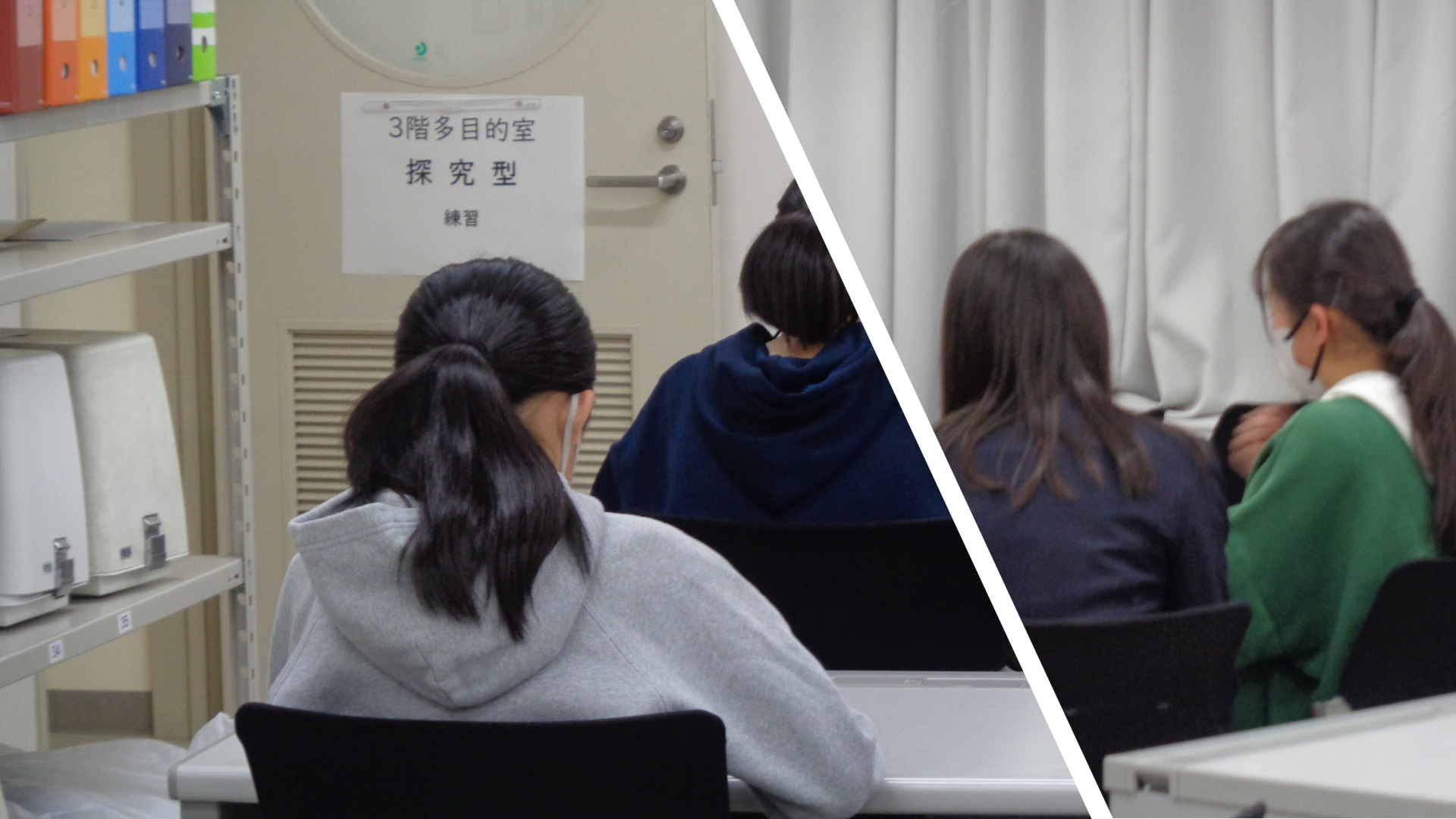 まとめの時間が終わると、受験生たちは別室へ移動します。ここでは、何をどう話すか、声も出して練習できます。そこには大学入試を終えた高校3年生の在校生も待機していました。当初は、ワイワイとアウトプットする時間になると想像していました。しかし今年は逆に、どうまとめるか、まずは「真剣に考える時間」になったのです。