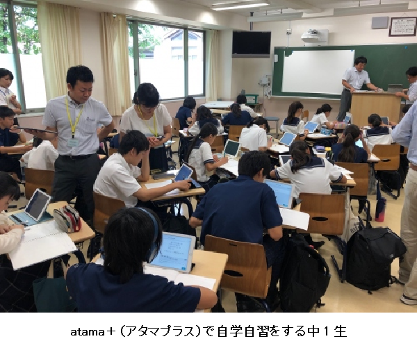 共学化して初めての中学1年生は、数学の授業に週2時間、タブレット型AI教材「atama+(アタマプラス)」を導入しました。当初は小学校範囲までさかのぼって自分の苦手範囲を学習している生徒ばかりでしたが、わずか半年で、半分の生徒が中1の内容を理解し、さらに1割の生徒が中学2年分の範囲をほぼ終わらせてしまったと言うから驚きです。