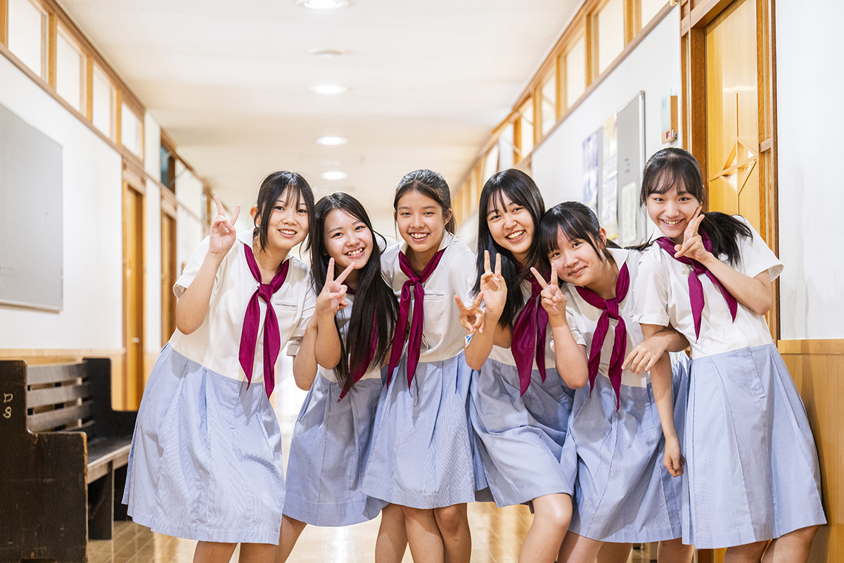 女子聖学院は開校以来、キリスト教の教えを土台とした建学の精神「神を仰ぎ人に仕う」を大切に、「自らの賜物を用いて他者と共に歩むことのできる女性」を育てる教育方針を貫いています。